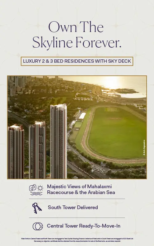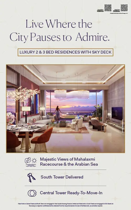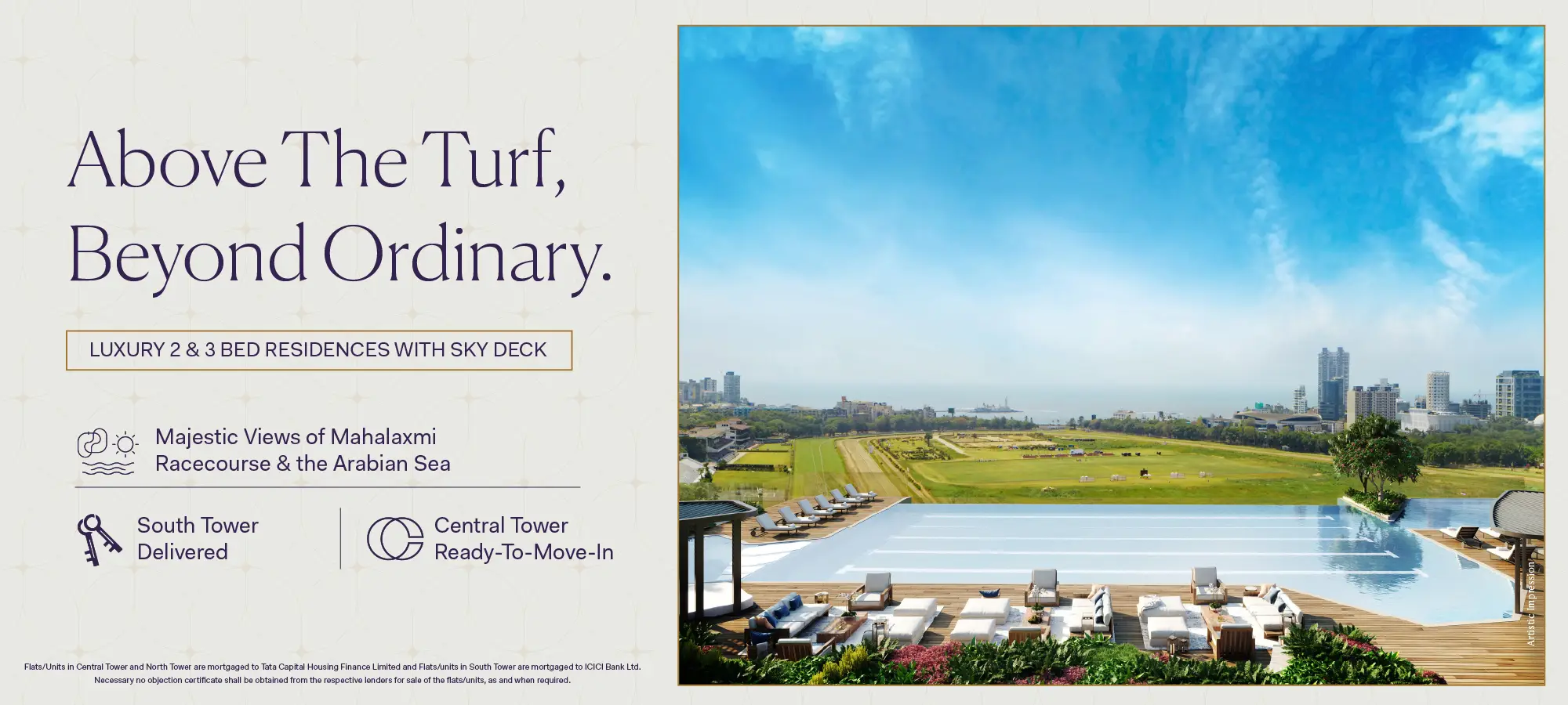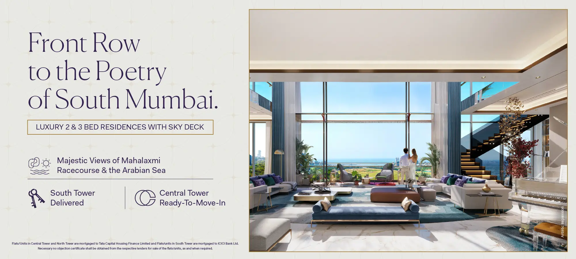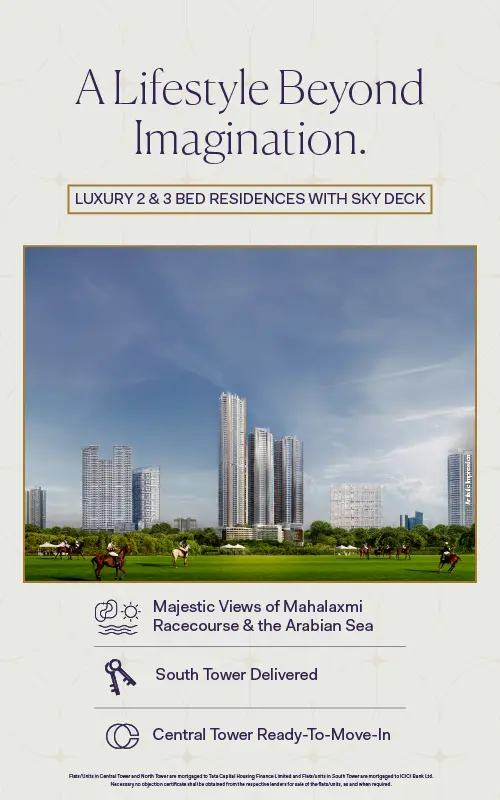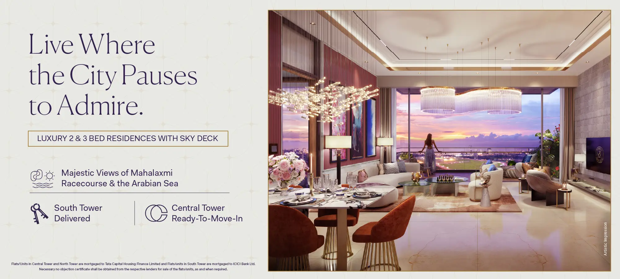 Lifetime views of the Mahalaxmi Racecourse & the Arabian Sea. Seamless connectivity to major Central Business Districts like BKC, Nariman Point & Lower Parel.